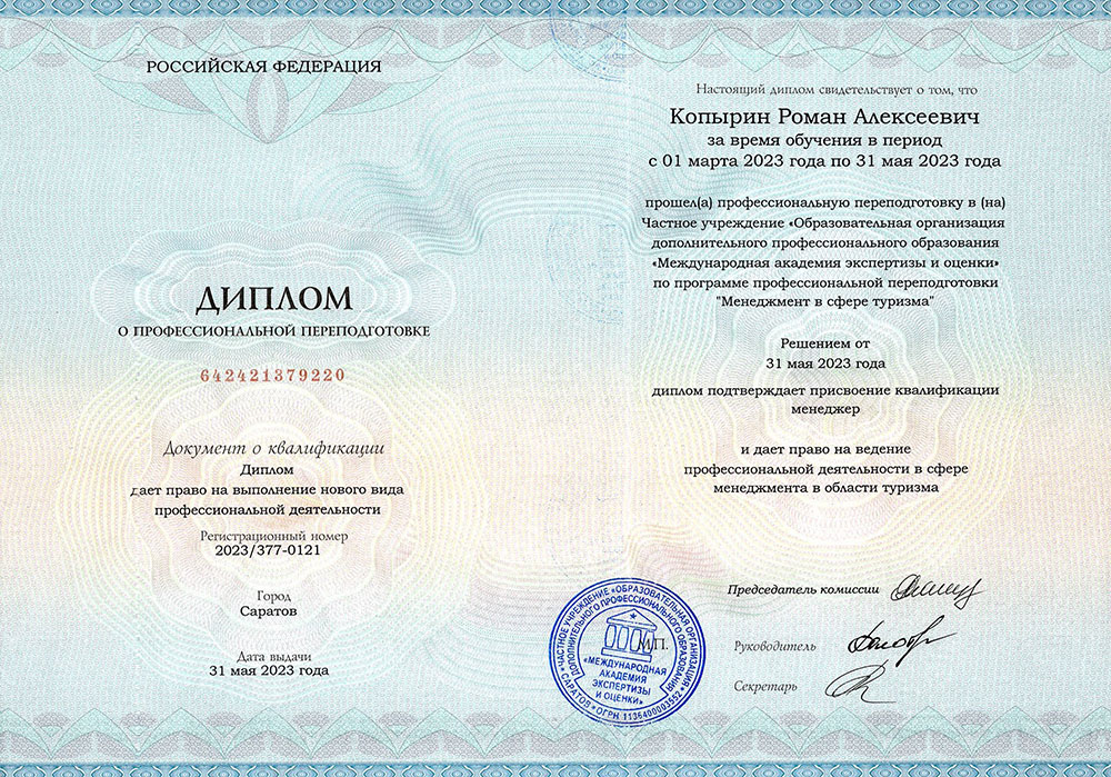 В результате обучения Вы получаете диплом о профессиональной переподготовке