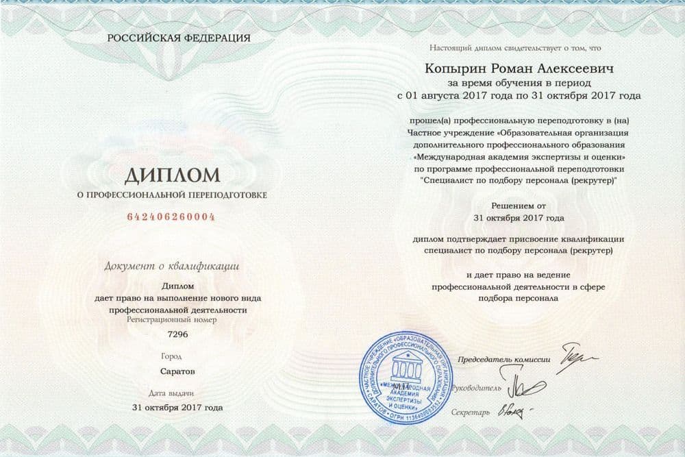 В результате обучения Вы получаете диплом о профессиональной переподготовке