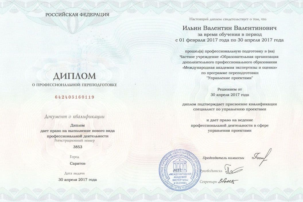 В результате обучения Вы получаете диплом о профессиональной переподготовке