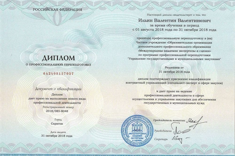 В результате обучения Вы получаете диплом о профессиональной переподготовке