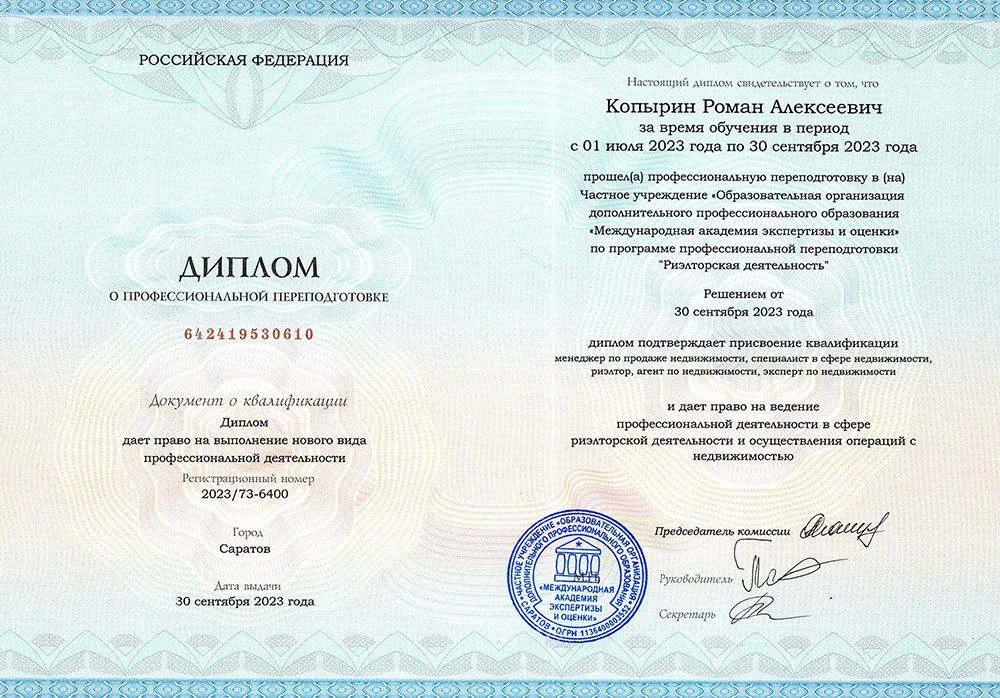 Название программы: Риэлторская деятельность.