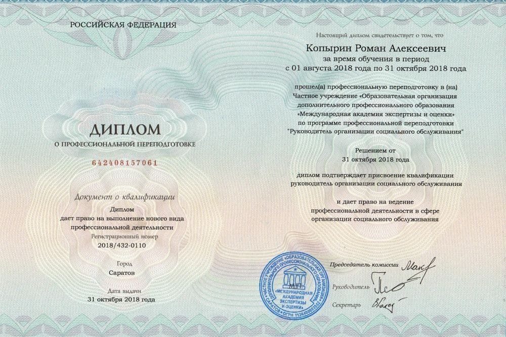 В результате обучения Вы получаете диплом о профессиональной переподготовке